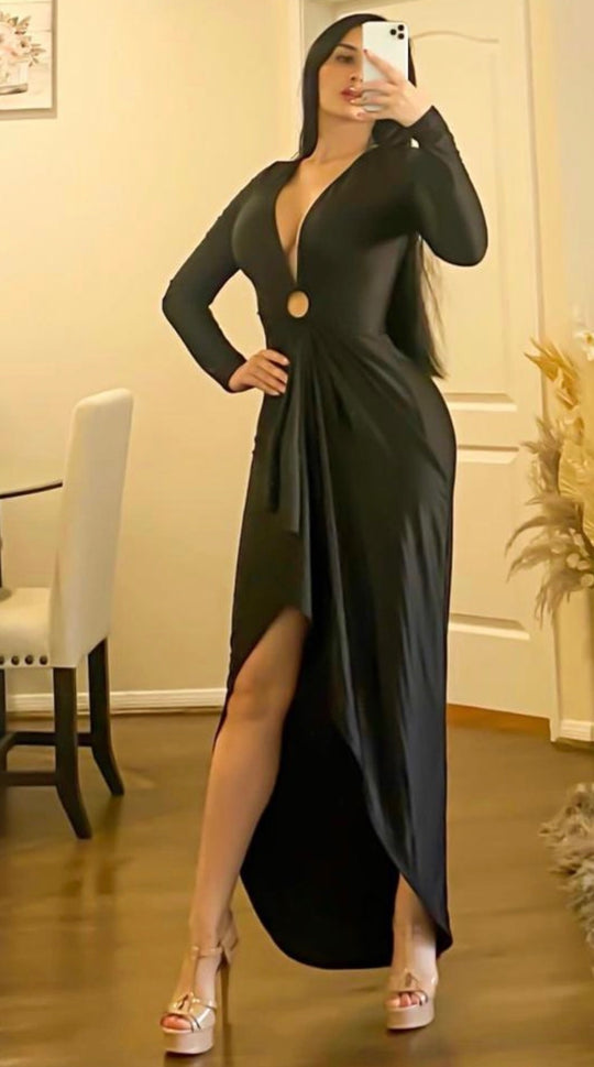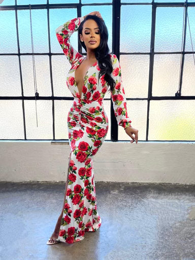 Cheetah Long Sleeve Ruffle Maxi Dress